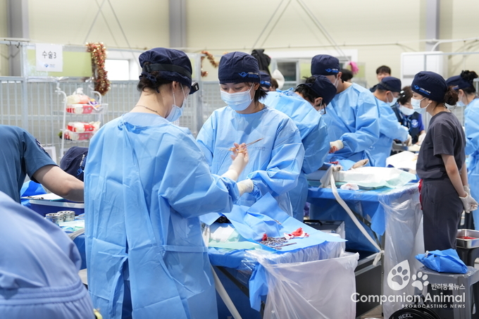 이번 봉사에서는 보호소 내 150여 마리의 개들에게 예방접종, 전염병 검사가 이뤄졌으며, 16마리 중형견이 중성화 수술을 받았다. 단순한 수술에 그치지 않고 ▲마취 관리 ▲회복실 운영 ▲위생 개선까지 전 과정이 체계적으로 진행됐다. 사회성이 부족한 개체의 경우 세심한 관찰과 관리가 병행돼 안전한 회복을 도왔다.