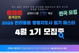 반려동물뉴스(CABN) 부산·경남 지역에서 유일하게 국가에서 인정한 1급 반려견 훈련사가 직접 운영·교육하는 한국반려동물전문학원이 2026년 국비 지원 과정 개강 소식을 전하며 본격적인 모집에 돌입했다. 25년 이상 현장에서 활동해 온 베테랑 훈련 전문가가 직접 티칭하는 실습 중심 커리큘럼으로, 지역 반려동물 교육 분야에서 가장 전문성이 높은 기관으로 평가받고 있다. 한국반려동물전문학원은 이번 국비 지원 과정을 통해 반려견 훈련사를 꿈꾸는 일반인, 직업 전환을 고려하는 예비 훈련사들에게 높은 수준의 전문 교육을 제공한다. 모집 과정은 다음의 3개 트랙으로 구성된다. 국가자격증반 독스포츠반(어질리티·독 PT·견체능 전문 티칭 과정) 행동교정 기초반 모든 과정은 100% 1대1 맞춤 실기 교육을 기반으로 운영되며 실제 현장에서 즉시 활용 가능한 티칭 능력을 완성하도록 설계됐다. 국가자격증 + 민간자격증 + 마약탐지견까지… 다중 자격 취득 가능하다. 한국반려동물전문학원은 국가자격증뿐 아니라 마약탐지견 민간자격증 과정도 함께 운영하며 실무 기반 전문화 교육을 제공한다. 수료생들은 강아지 훈련사, 행동교정사, 독스포츠 지도사, 동물병원 보조, 훈련센터 전임 훈련사,
