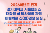 반려동물뉴스(CABN) 경기대학교는 2026학년도 전기 석사 및 박사과정 미술치료 전공 신입생을 모집한다고 밝혔다. 이번 모집은 경기대학교 서울캠퍼스 대학원에서 진행되며, △대체의학대학원(야간 4학기제) 석사과정과 △일반대학원 박사과정 모두 일반 및 편입학 전형을 포함한다. 지원 자격은 석사과정은 학사학위 소지자 또는 졸업예정자, 박사과정은 석사학위 소지자 또는 졸업예정자이며, 서류 및 면접심사를 통해 전형이 진행된다. 전형 일정에 따르면, 석사과정은 2025년 11월 28일(금) 오후 5시까지 우편 접수를 통해 진행되며, 박사과정은 2025년 11월 6일(수) 자정까지 온라인 접수(uwayapply.com)를 통해 마감된다. 관련 문의는 석·박사 입학상담 대표번호(010-8029-6940)를 비롯해 석사과정은 02-390-5080, 박사과정은 02-390-5244로 가능하다. 자세한 내용은 경기대학교 대학원 홈페이지 공지사항을 통해 확인할 수 있다. 경기대학교 미술치료 전공 과정은 다양한 실무 중심 교육 콘텐츠와 임상 경험을 제공하여, 현장 전문성과 자격 취득이라는 두 마리 토끼를 잡을 수 있는 커리큘럼을 자랑한다. 특히 ▲논문(1:1 개별지도), ▲졸업시
